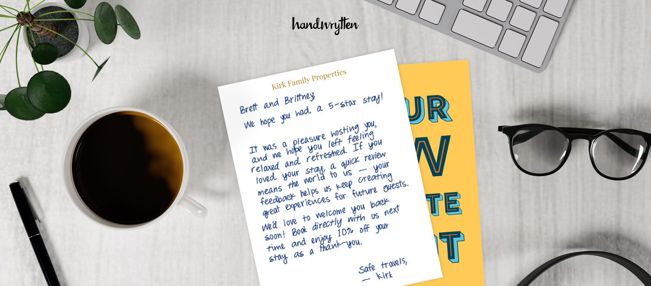 • Vacation rental brands can use handwritten cards to onboard owners or build loyalty with long-term guests.