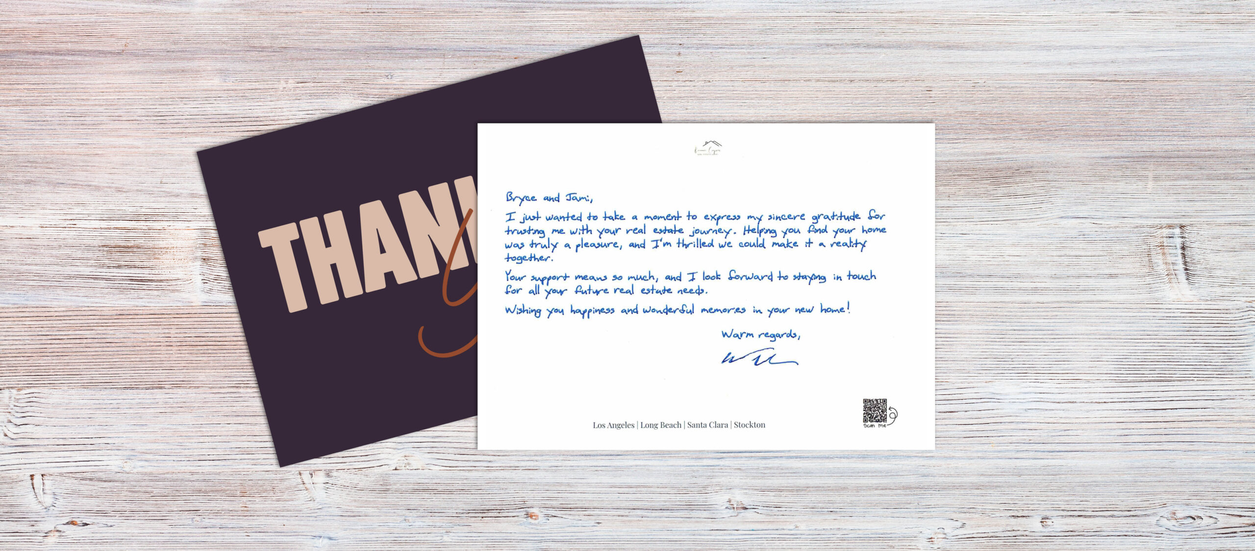 A handwritten thank-you reinforces professionalism while showing genuine appreciation.