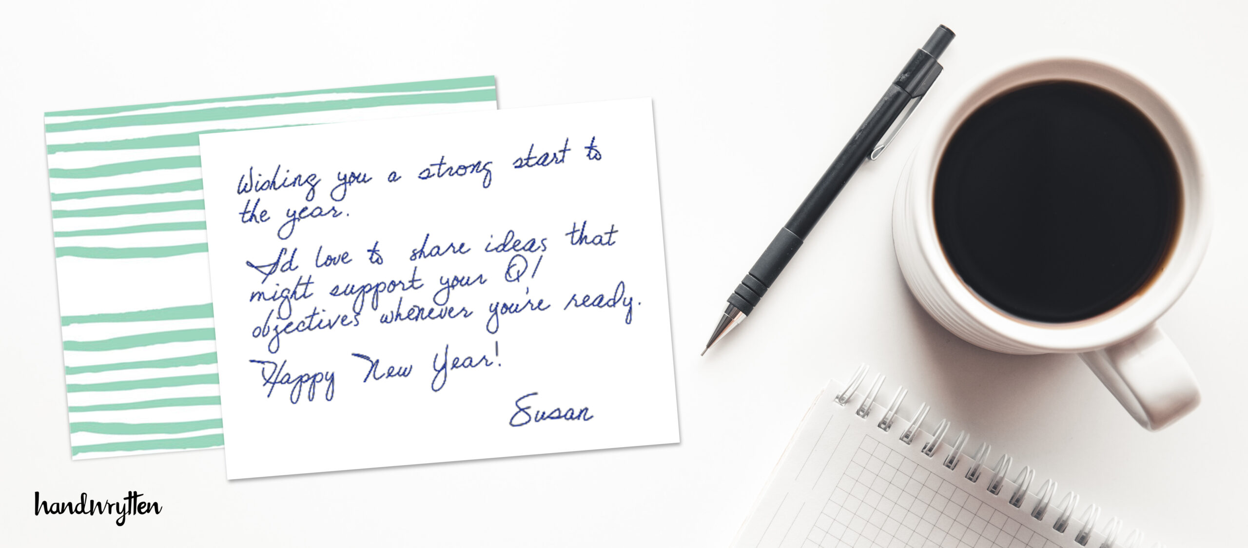 The post-holiday period is an ideal moment to reset relationships, start conversations, and create pipeline momentum. Handwritten notes provide meaningful, personal touchpoints that help revitalize cold leads in a way digital outreach alone cannot.