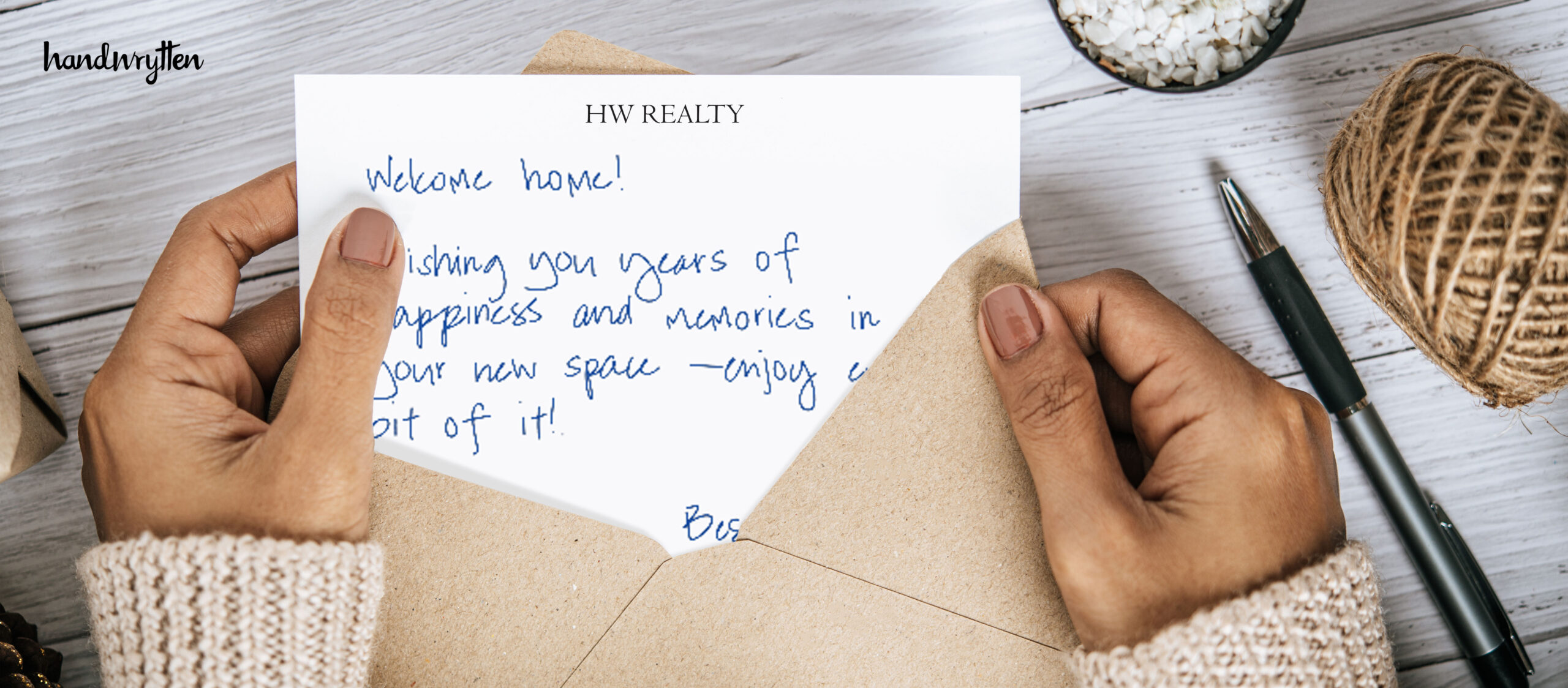 With Handwrytten, agents and brokerages can easily send personalized, handwritten cards without ever picking up a pen. Whether you’re welcoming buyers home, thanking sellers, or staying connected to past clients, a handwritten note offers a genuine, memorable way to strengthen every relationship.