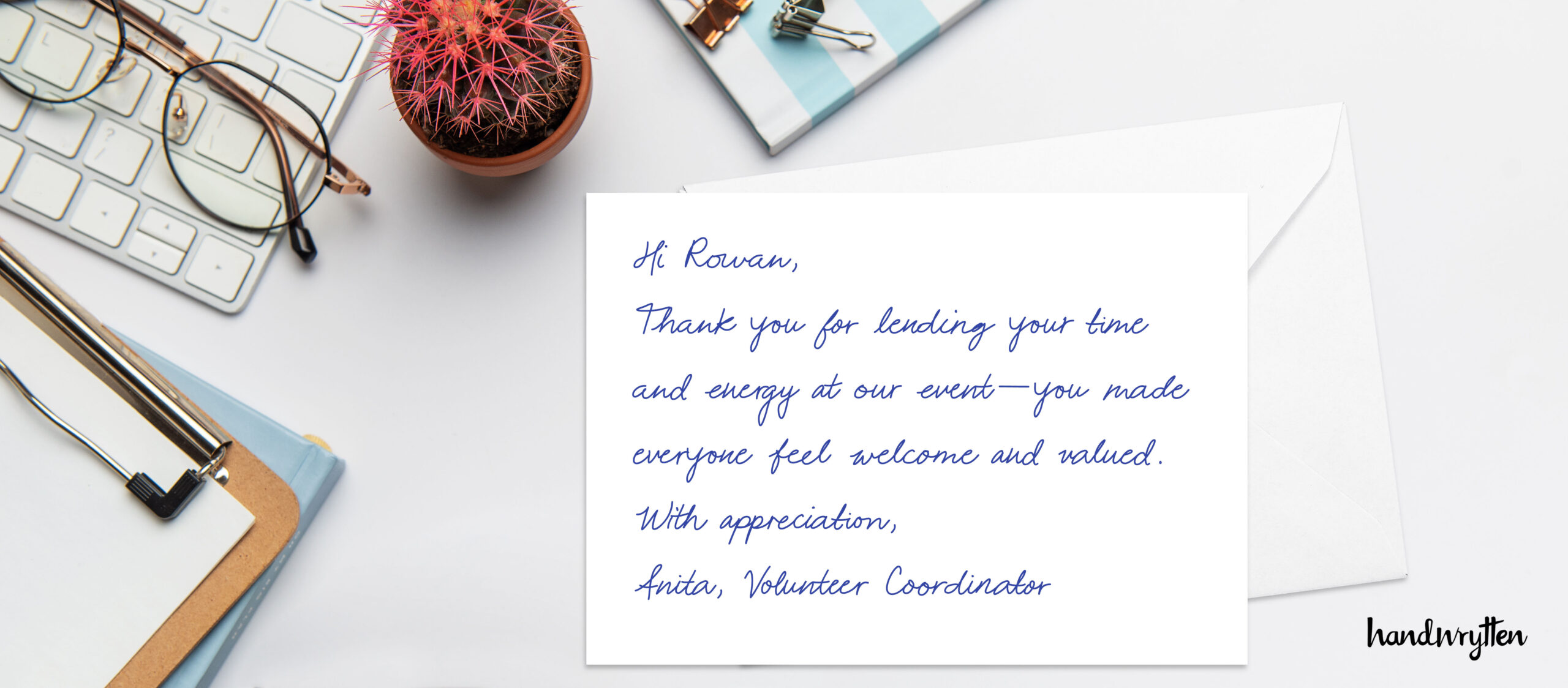 Match the tone—professional, elegant, casual, or fun. Handwrytten offers designs for business, nonprofits, and personal use.